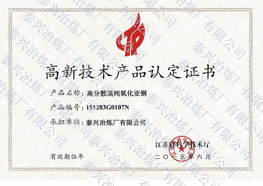 是我國(guó)《工業(yè)氧化亞銅》、《工業(yè)堿式碳酸銅》、《工業(yè)活性氧化銅》行業(yè)標(biāo)準(zhǔn)的起草單位